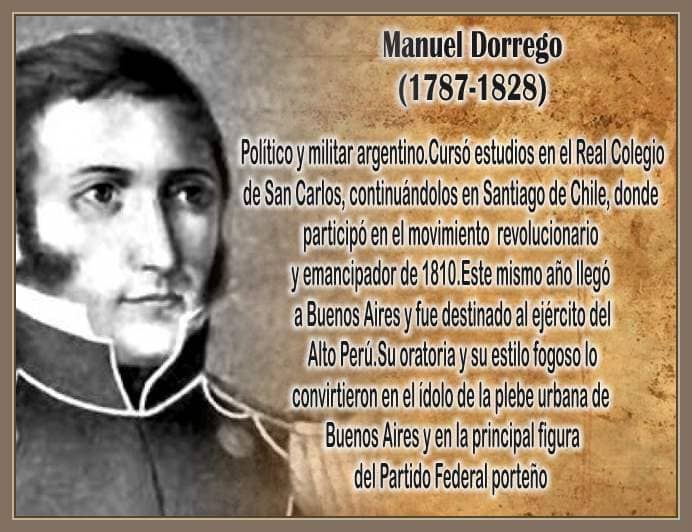 En 1828, desaparecido el poder central gobernaba en Buenos Aires Manuel Dorrego destacado jefe del federalismo local.
